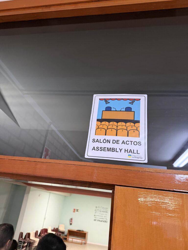 After the talk from the woman, and the questions from the parents, were were directed to a school tour. We walked through the halls and up the stairs, floor by floor. We popped into one primary class, an english class of course (they are always promoting this at all of the schools, but it’s not that important to us, TBH). We also saw the chapel, and comedor (lunch room), and found out that ESO does not eat lunch at school (weird). I did see labeled rooms, which I liked. This is usually seen in TEA schools (schools that have special classrooms for kids with autism), but not in schools without it, like this one.